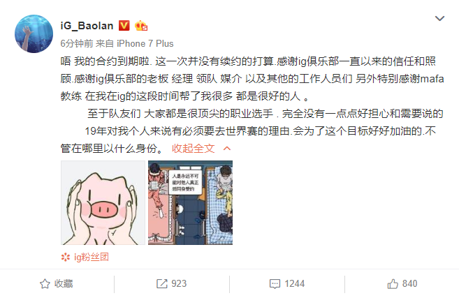 很多粉丝希望宝蓝能够继续留在IG,保持今年的冠军阵容。而IG工作人员也透露正在积极与宝蓝沟通,校长和队友们都有劝过。而在今日,IG官博终于发布了续约的消息,宝蓝重新链接,并且续约了三年!