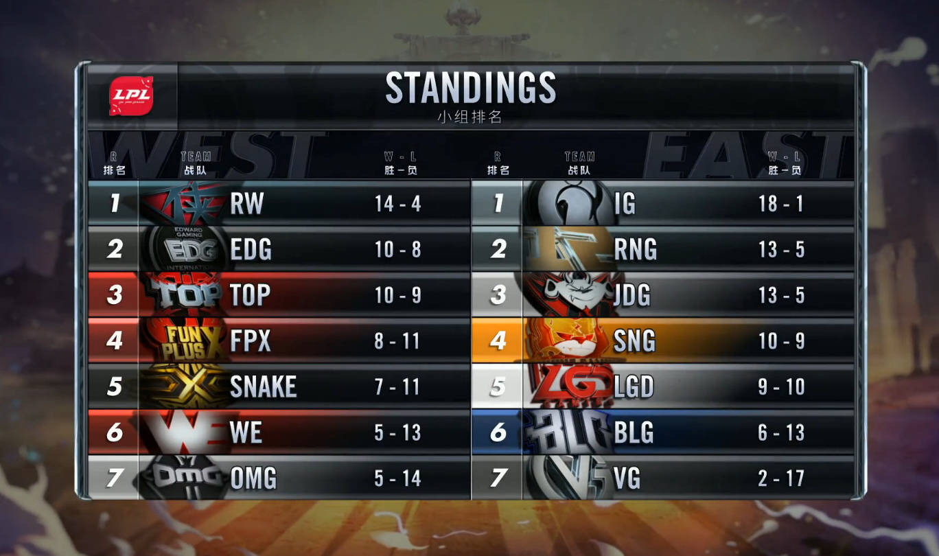 同理,由于WE、OMG的西部赛区固定席位,同为4号池的BLG、VG则只能进入东部赛区。