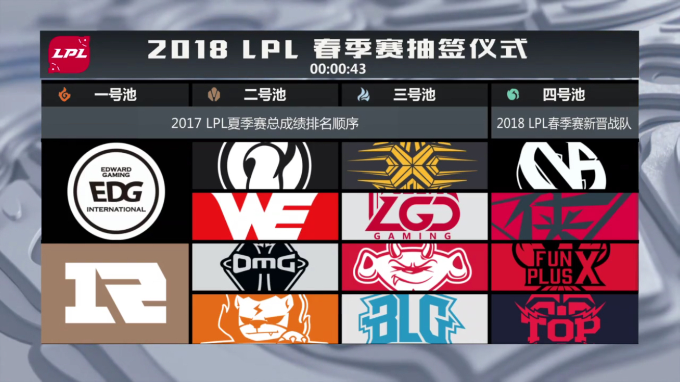 根据该抽签规则,按照2018LPL夏季赛成绩排名进行抽签池划分: