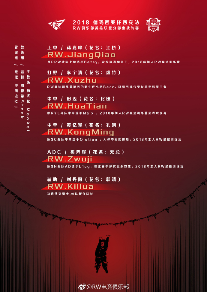 RW电竞俱乐部英雄联盟分部新赛季名单: