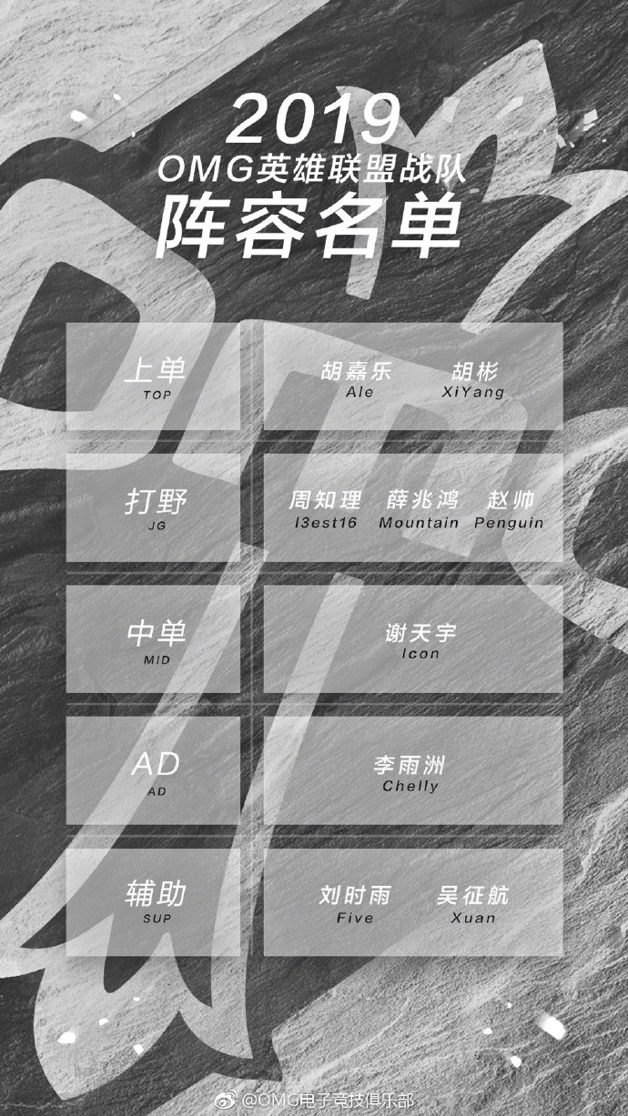 OMG电子竞技俱乐部英雄联盟分部新赛季名单: