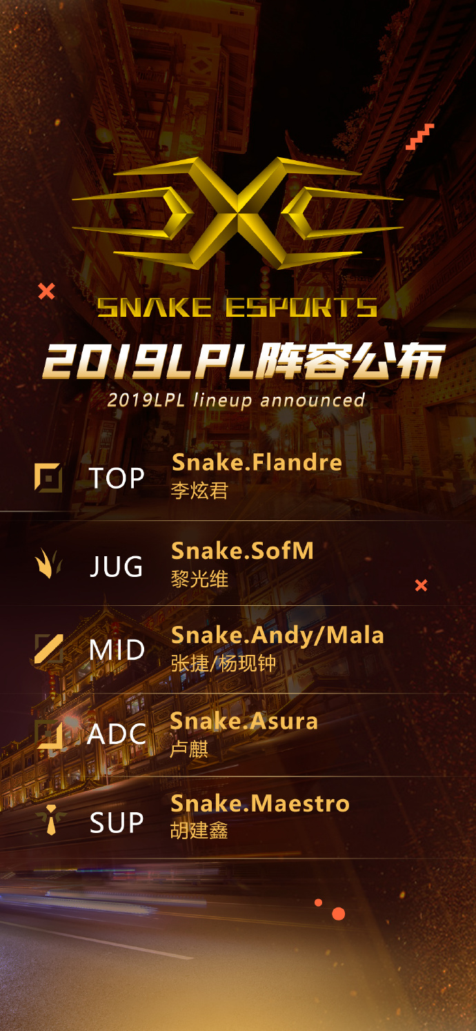 Snake电子竞技俱乐部英雄联盟分部新赛季名单: