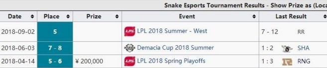 Snake和BLG的赛事奖金一样,只有春季赛的5-6名奖金20W。