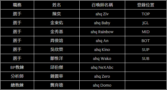 ahq 在 2018 度过了最难熬了一年,夏季赛更跌入要打升降赛的命运。本季加入了新人打野,加上之前于 AFR 表现不俗的 Rainbow 镇守中路,这是赤色天马重返荣耀的第一步。