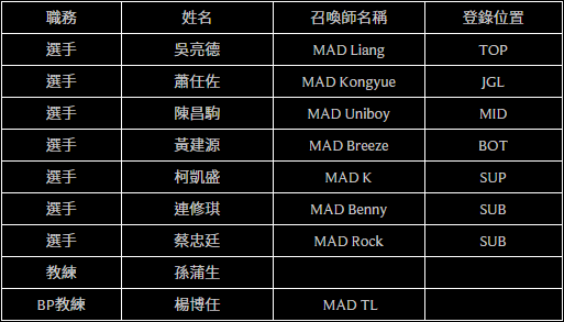 MAD 去年刚加入 LMS 就打进季后冠军赛,甚至还闯进世界赛,本季选手原班人马丝毫未动,唯独少了绿茶教练的指挥。接续执掌兵权的土龙教练能否担下重任呢?崭新的一年 MAD 又会带来怎样令人惊艳的表现呢?