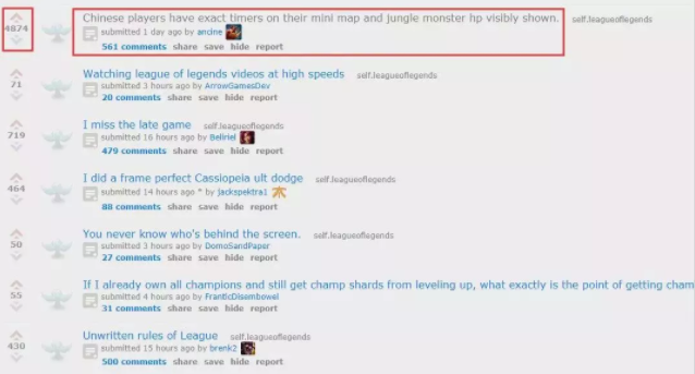 那么这篇帖子究竟说了什么,能引来这么多玩家吃瓜?从标题其实就能看出来。Chinese players have exact timers on their mini map and jungle monster hp visibly shown(中国玩家小地图上有各类计时器,而且还能显示野怪血量数值)