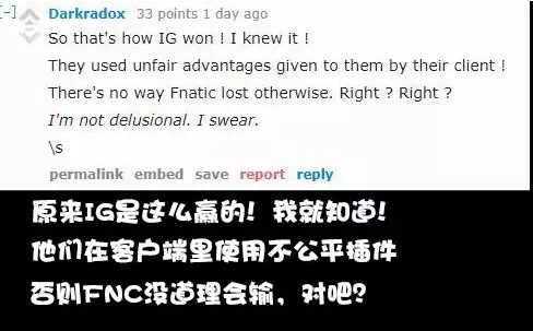 除此之外,话题还一度被扯到了IG身上。既然中国玩家都能使用这种插件,那IG队员是不是比赛上也能用?他们是不是就靠这个“外挂”来夺得冠军?
