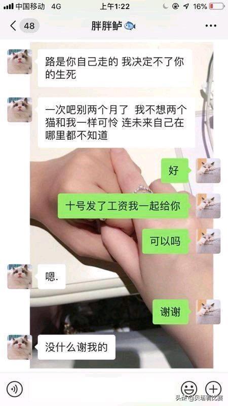 之后又是一段女友要钱的聊天记录,女友表示不希望两只猫和自己一样可怜,Lies表示十号发了工资后一起给你。