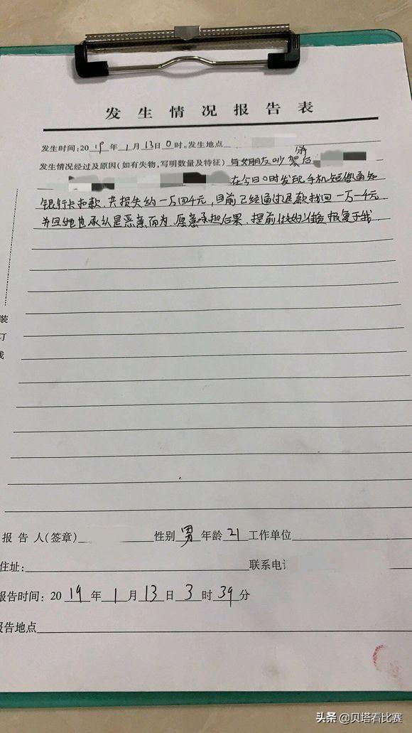 之后Lies在13日凌晨报了警,并且根据他的描述:自己因为和女友吵架,在13日0时发现手机短信通知银行卡扣款了1万四千元,目前通过退款找回了一万一千元,并且女友也承认自己是恶意的,愿意承担后果,只是为了报复自己。