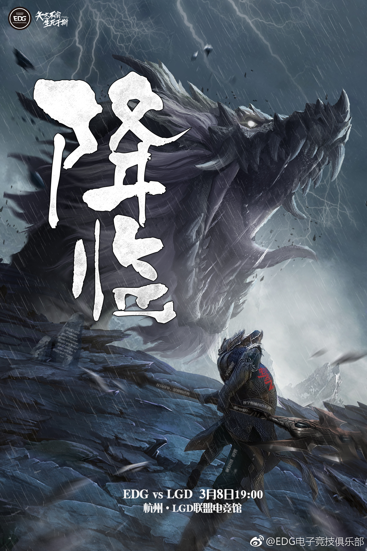 LPL春季赛3.8日EDG战队官方也是晒出了赛前的海报,他们这一场对阵LGD战队,一起来看看吧。