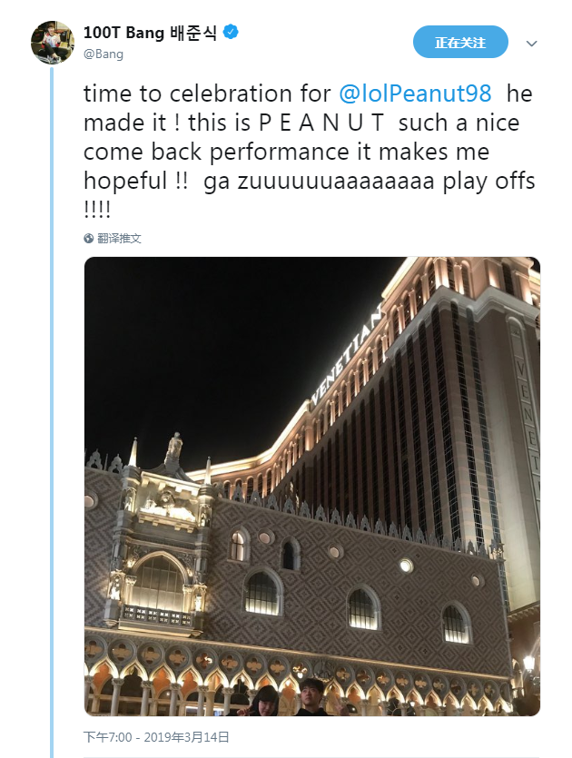 LCK:Peanut带队弑神成功 Bang备受鼓舞发推感慨