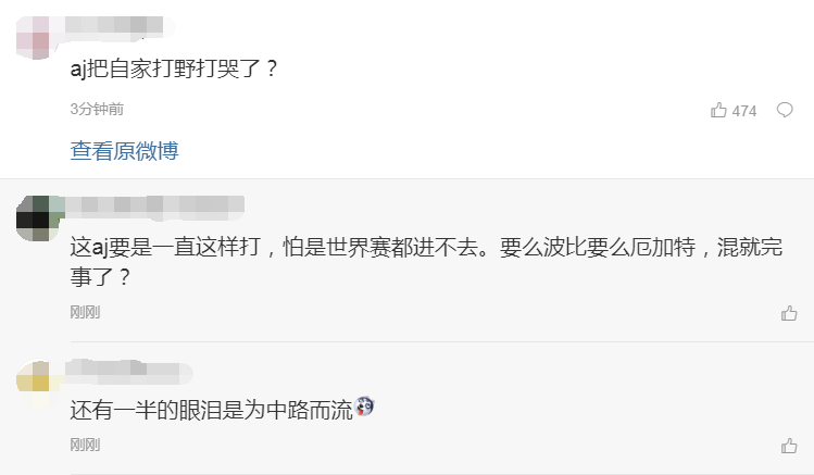 这比赛看的真要命,aj打的跟路人一样,加油啊,这么打不可能到决赛的呀