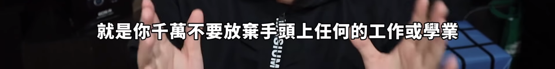 所以那些觉得自己游戏打得很好的人,即使你非常想加入成为职业选手,也一定不要放弃你现在的工作和学业。必须要顾好自己现在的工作和学业,才可以来考虑进入电竞圈。