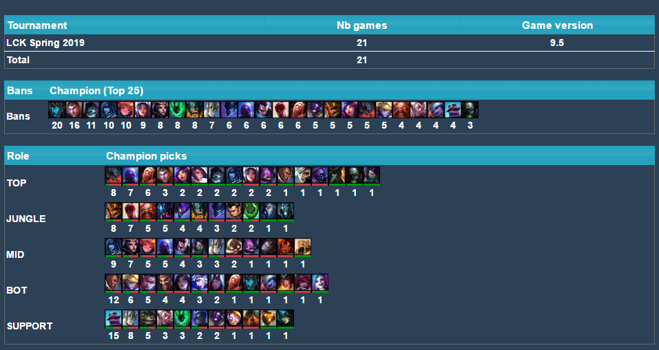 由于这里复仇之矛频频被ban,卢锡安成了唯一首选,且效果不错。冰女和布隆在LCK的胜率也很高。