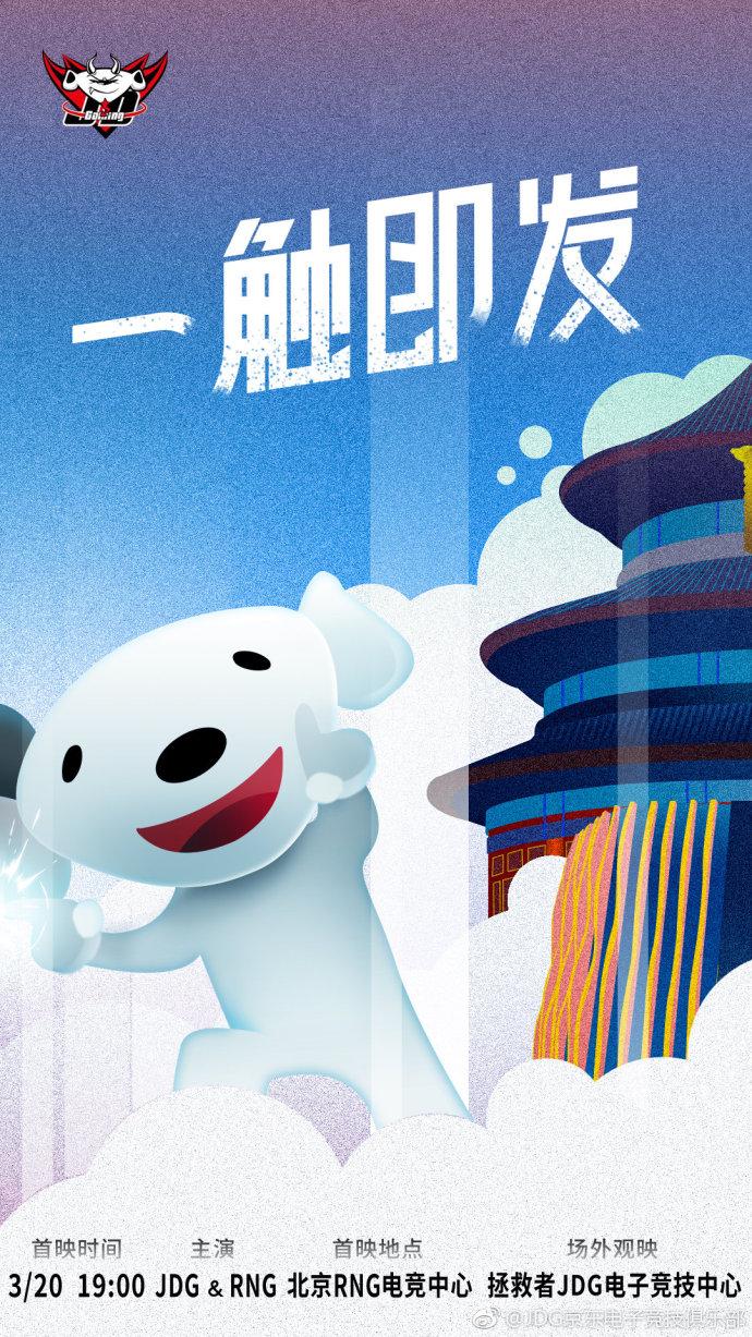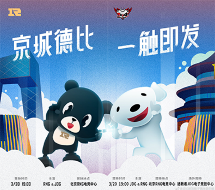 2019年LPL春季赛第九周RNG对战JDG的比赛即将于今天下午7点在北京RNG电竞中心进行。双方战队发布了赛前海报。