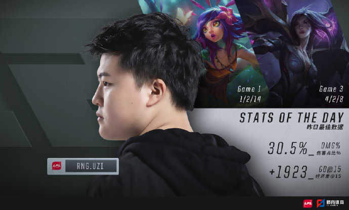 昨日LPL最佳数据:Uzi展现核心carry实力