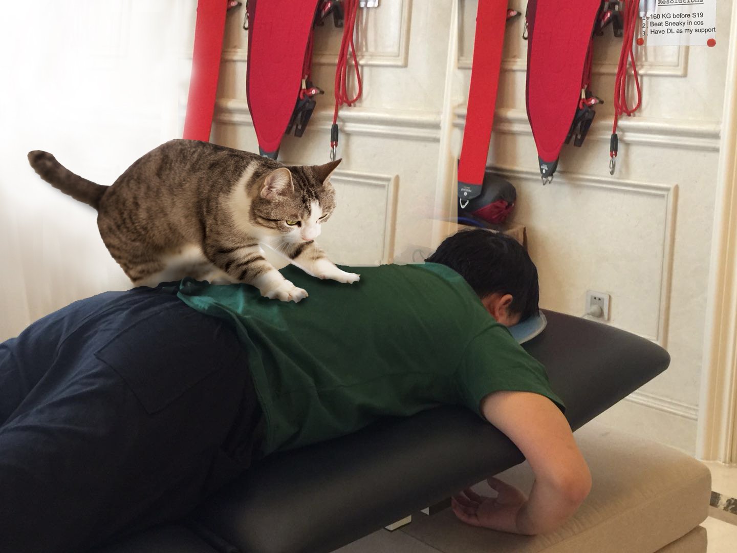相信在之前的新闻里,大家也都知道了RNG战队ADC选手Uzi开通了推特来跟国外的粉丝互动。就在近日UZI更新了了一张照片,图片上是在做康复运动的Uzi,同时还有一只猫趴在他的背上。