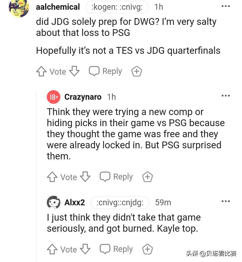 -JDG是不是只准备了DWG?我真的难以释怀他们输给了PSG,希望八强赛中不要遇到TES和JDG的比赛。