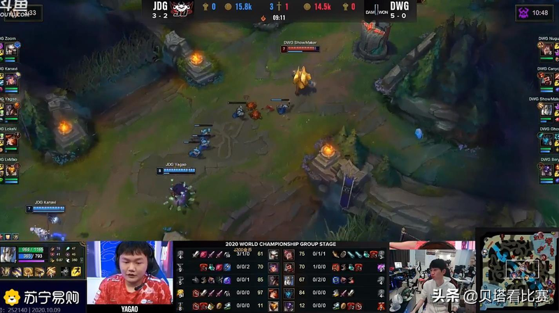 随后Doinb重点复盘了JDG和DWG的比赛,他认为DWG是在练习阵容,原话大意如下:看阵容的话JDG已经赢了,第一名第二名已经无所谓了,绿毛巴德玩得这么好还给他,我觉得DWG是不是在练英雄啊。showmaker加里奥玩得没有那么好,他有发条、辛德拉、卡牌都可以选,他选加里奥,不觉得很奇怪吗?他用辛德拉carry了这么多把,为什么不选辛德拉啊?我猜他们是这样想的,如果这把选加里奥赢了,挺好,8强打DWG的队伍还要考虑加里奥这个英雄,如果输了也无所谓,因为我们就是小组第一,多练练其他英雄。
