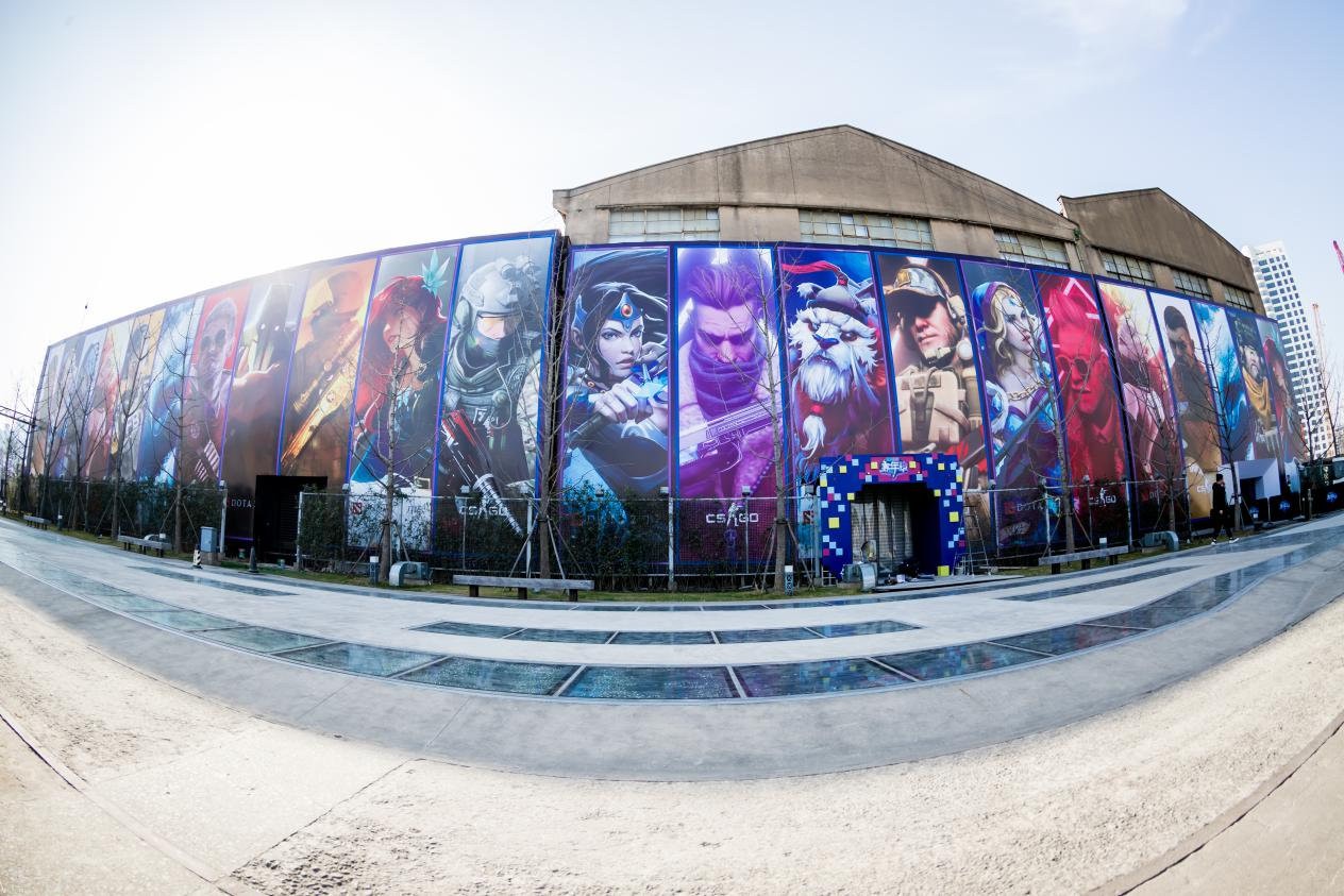 完美电竞嘉年华明天就要在上海杨浦滨江船厂开启,今天DOTA2官微分享了嘉年华现场布置的一些图片,因为疫情原因没法去的玩家可以抢先一览现场的布置,感受竞技氛围。