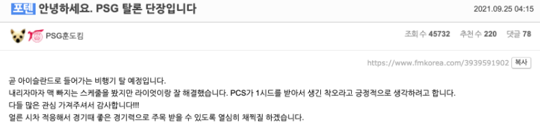 后PSG经理在韩网FMKOREA论坛发帖,称已解决该情况,原文大意如下: