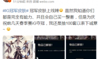 近日,iG横扫JDG,以3:0的成绩夺得LPL春季赛冠军,为此官方推出了iG冠军皮肤套装。伴随着iG皮肤正式上架客户端开始出售,已经有不少网友选择买入了这套冠军系列皮肤,而同时,IG老板王思聪也开始在微博抽奖100套自家战队皮肤以示庆祝。抽奖地址:点击进入不过