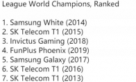 今天ESPN记者发布推特动态,对英雄联盟各年的世界赛冠军进行排名,14年的SSW位居第一,IG和FPX位列三四名,SKT在榜单中占据三席。1、SSW(2014年)2、SKT(2015年)3、iG(2018年)4、FPX(2019年)5、SSG(2017年)6