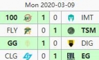 LCS第七周第二个比赛日结束。赛果如下: 100T 1:0 IMTFLY 0:1 TSMGG 1:0 DIGCLG 0:1 EG 积分榜方面,C9依然领跑,FLY与TSM并列第二,100T与EG并列第四,其他如图所示。 LCS明早还有两场比赛:TL vs IM