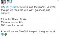 今早TSM击败了FLY之后,本周他们收获两连胜,终结了C9连胜,LCS榜首前两名接连败于TSM马下。赛后TSM更推表示将参与公益植树活动。原文大意: “嘿嘿FLY,我们同样也爱这个星球。所以即使我们拿下胜利,我们也会继续捐赠:海洋亚龙等于一棵树队伍击杀等于15