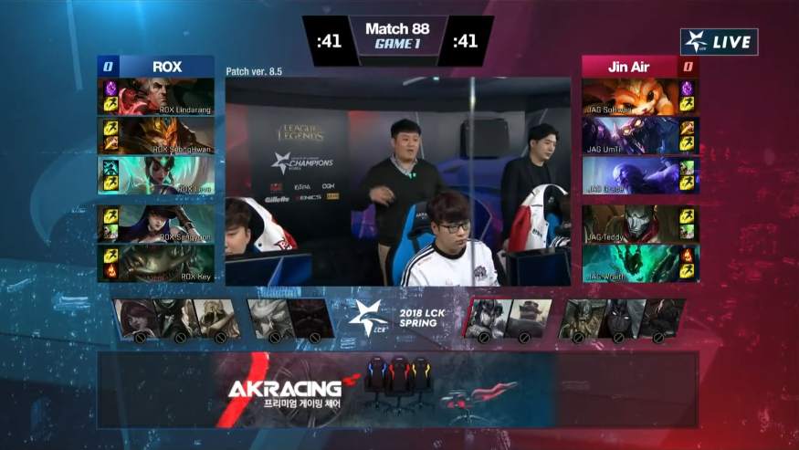 2018LCK春季赛3月24日第二场比赛将由ROX对战JAG战队,这两只战队实力十分相近,排名也是仅仅咬在一起。那么这场比赛谁能笑到最后呢?小伙伴们是不是非常期待!让我们一起拭目以待吧!3月24日 ROX VS JAG(第一场) 先来看一下BP位置: 比赛视频