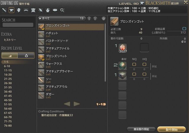 制作一件物品一共有两种方式,一是点击开始制作作业,就会进入物品的制作界面,另一是点击简易制作。如果你点击的是“开始制作作业”,那么你在进入制作界面后需要使用各种工匠技能来完成物品的制作。如果你点击的是简易制作,那么你在输入简易制作的物品数量后,就会自动开始制作物品。