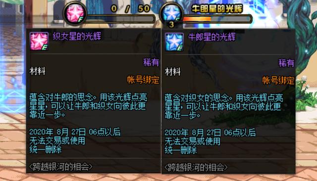 织女星的光辉每天50个材料,可以点亮5次,共获得50个小星星。