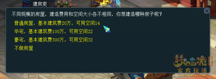 民房满空间及要求:最大空间143级建筑技能体力上限300以上基本费用20万【不包括要的环和召唤兽】