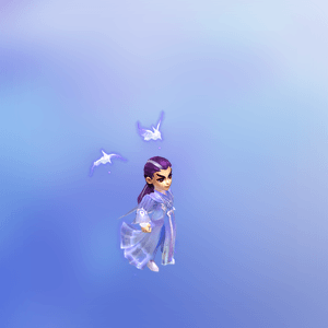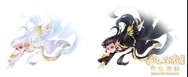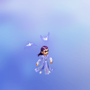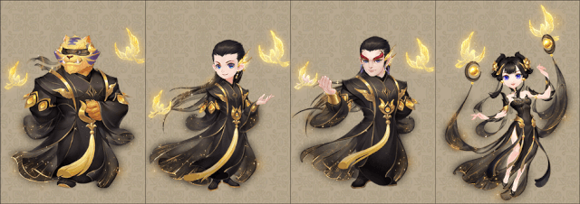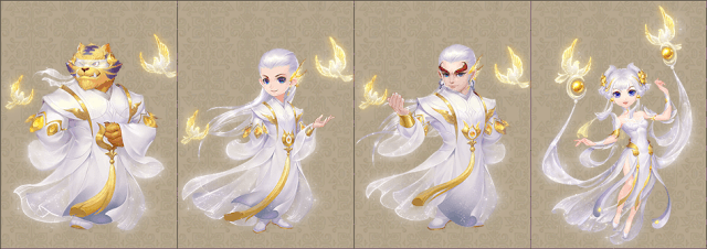 每个人物的锦衣后面都有一对较小可爱的鸟儿