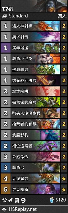 炉石传说通灵学院T7猎卡组,是这个通灵学院版本的主打卡组,通灵学院版本为很多职业带来了非常强力的超模卡牌,导致环境大变,来看看通灵学院T7猎卡组推荐。