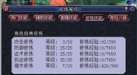 | 方寸山修炼推荐 | 法术修炼(优先点) |