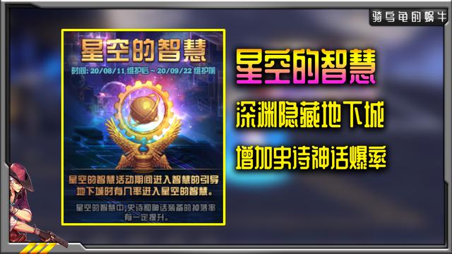 DNF星空的智慧攻略在活动持续期间刷智慧的引导地下城会有一定的几率出现隐藏副本【星空的智慧】,进入后可以增加史诗和神话的爆率。这个活动没有低保,都是随机。