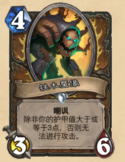 4费3-6嘲讽,如果你没有3点或以上的护甲,这随从无法攻击。