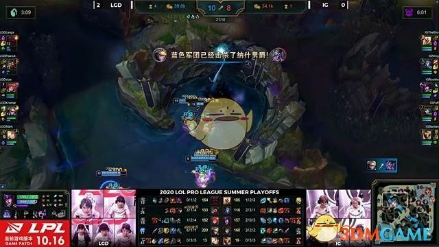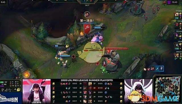 [22:40] 上路团战佐伊被抓先被击杀,但LGD赶来拉克丝Q中IG中上,辛德拉直接被秒,随后EZ疯狂输出E脸拿下双杀,推掉上路高地。