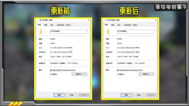 更新前后的游戏大小对比