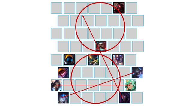 吹风都知道对着吹我就不赘述了,你更多的是要理解攻击的最近距离机制,你是可以做到让棋子指哪打哪的,也就是可以实现最完美团战,大家要知道420是一格,660是两格,880是三格,1180是四格,理解了这些你的棋子就不会乱动。