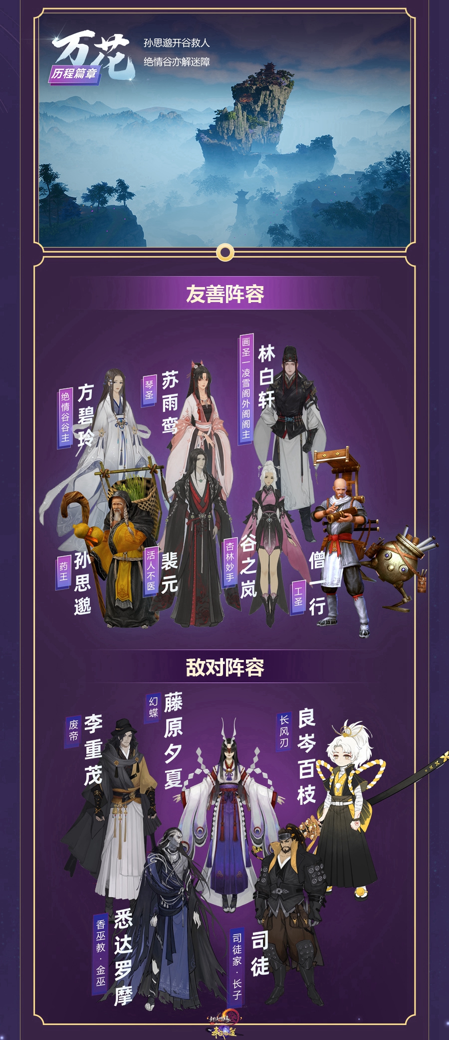 与此同时,长安城内突发瘟疫来势凶猛,万花谷孙思邈决意开谷救人,殊不知却有一场浩劫隐于这次疫情中。关键时刻,绝情谷谷主方碧玲决定放下昔日恩怨,出手相助……