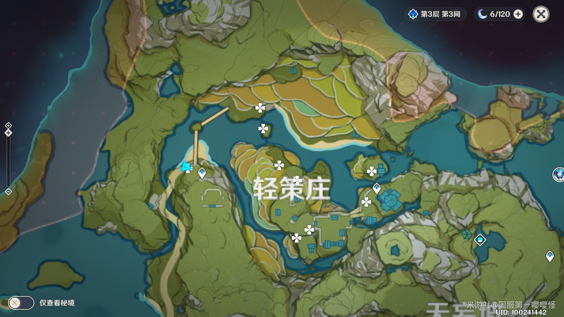 石门附近的在红圈圈出来的地方,每个标记有两株,那附近或许还有,奈何地形搞心态、怪又多、还没传送点只找到这两个点,旅行者们有新发现可以指出来