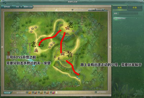 在开战之前,需要提前将BOSS附近的天一教余孽一一击杀;否则在BOSS战时,BOSS会召唤附近存在的天一教余孽攻击玩家,给玩家挂上毒DEBUFF,伤害极高;但是这个毒可以驱散,记得让治疗洗好驱散即可。