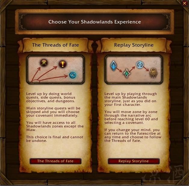 但是一旦你有一个满级角色且这个角色已经完成了所有的主线任务,那么你的第二个角色做完引导剧情到达暗影国度之后,会有一个特殊的NPC给你一个选择: