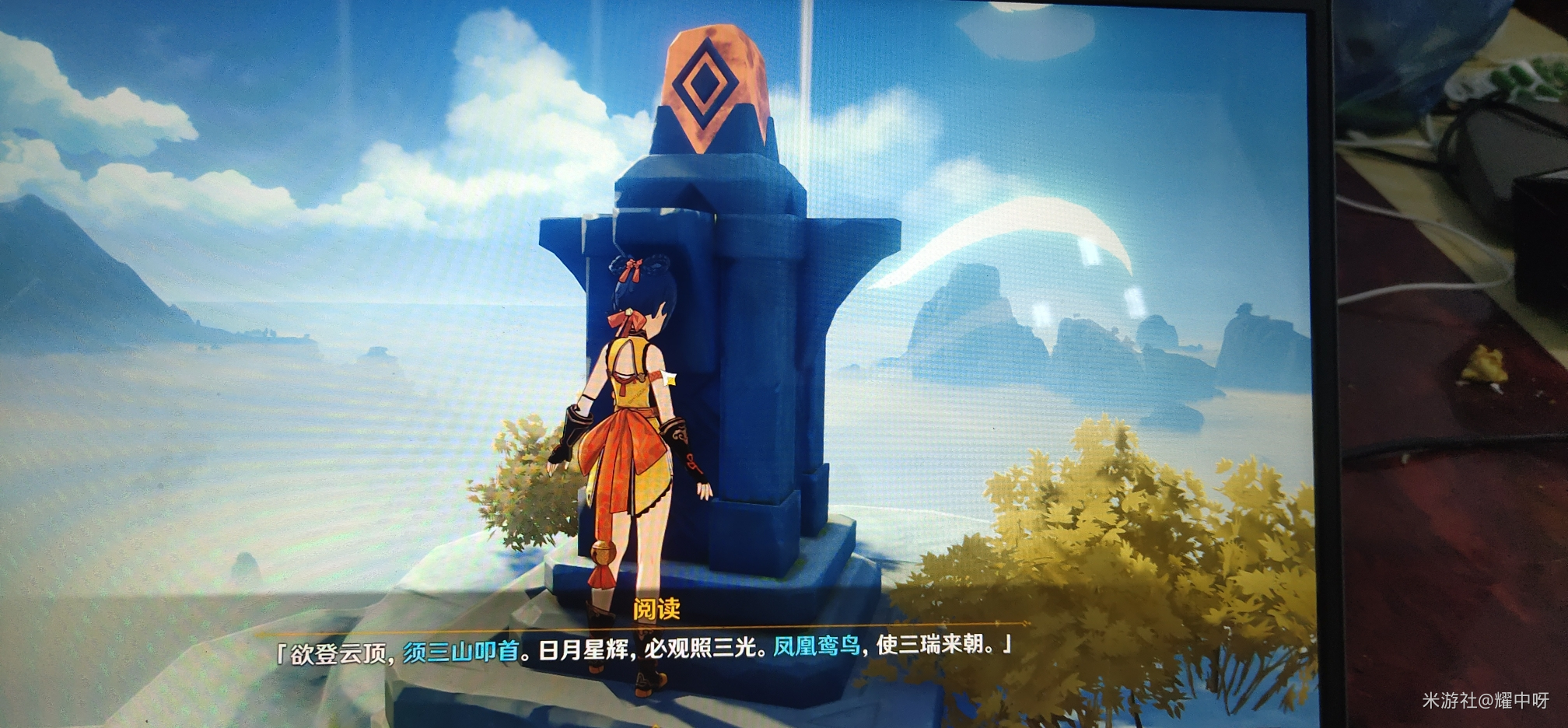 阅读一下石像,会有流光特效提示,然后在三坐山上有三只凤凰,旋转指向庆云顶