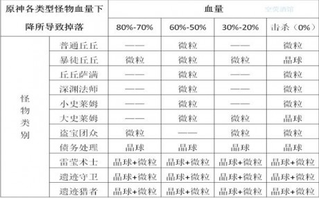 3、怪物血量下降导致的元素微粒和晶球掉落只与怪物的血量有关。