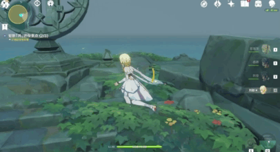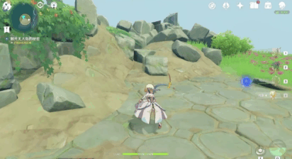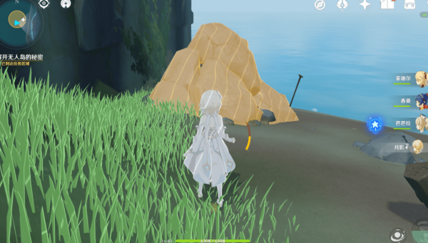 开启任务后来到海岛的右侧,开启元素视野,可以很清晰的看到一个被石块掩藏的地方,把石块区域打掉,就可以获取隐藏的任务文本——《残破的笔记》