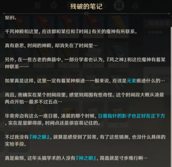 打开背包阅读得到的这份残破的笔记