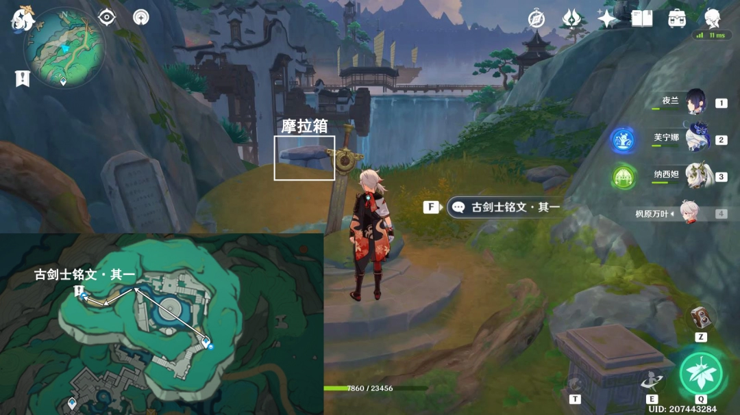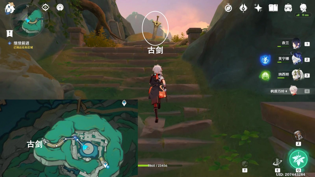 按图中指引路线走,前往古剑位置